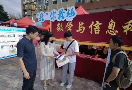 党总支书记李建伟、副书记杨向宇向学生发放资料,