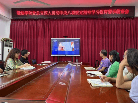 7月1日,星空体育官方网站党总支在2号实验楼343会议室召开深入贯彻中央八项规定精神学习教育警示教育会,深刻汲取违纪违法案件教训,以永远在路上的坚韧执着,持续加固中央八项规定精神堤坝。会议由学院党总支副书记杨向宇主持。