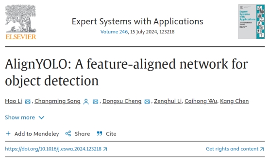 近日,星空体育官网2021级研究生李灏以第一作者在《Expert Systems With Applications》期刊上发表题目为“AlignYOLO: A feature-aligned network for object detection”的研究成果(论文链接:doi.org/10.1016/j.eswa.2024.123218)。论文的通讯作者为研究生指导教师宋长明教授。《Expert Systems With Applications》是人工智能、运筹学等领域国际顶级期刊,期刊当前影响因子为8.5,属于中科院SCI期刊大类分区1区TOP期刊,在全球具有强大的学术影响力。