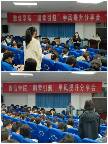 在交流互动环节,同学们就如何规划大学学业、如何学好本专业、如何选择跨学科交流学习以及创新创业等方面同五名榜样代表进行深入交流探讨。数学类221班王紫嫣同学表示,要做好自己的学业发展规划,明确目标,保持高昂的学习热情,争取在学科竞赛方面为学院的高质量发展贡献力量。数学类232班叶婷玉同学表示,要挖掘自身潜力,积极探索跨学科交流的学习机会,助力星空体育官网数学专业学科建设,为学校更名河南电子科技大学贡献自己的一份力量。