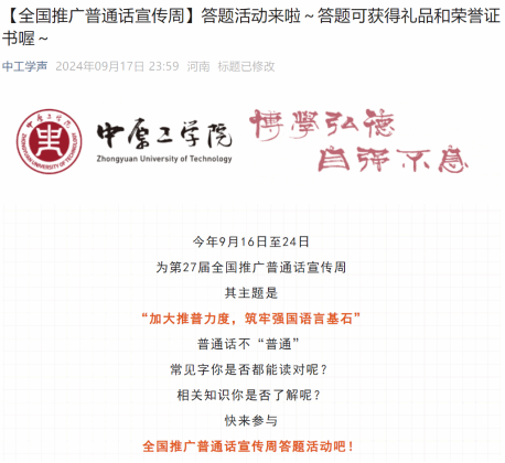 为了深入贯彻落实习近平总书记关于教育的重要论述和关于语言文字的重要指示批示精神,加大国家通用语言文字推广力度,提高群众使用国家通用语言文字的意识和能力,9月16日至22日,星空体育官方网站开展第27届全国推广普通话宣传周活动。