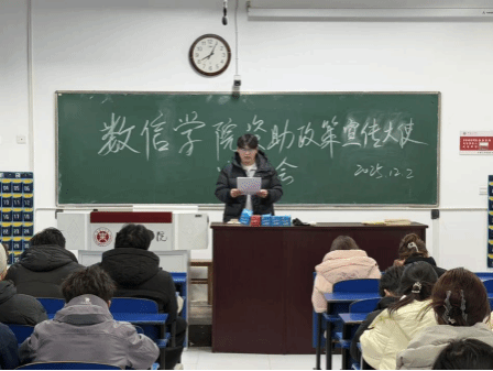 为全面落实国家及学校大学生资助政策,充分发挥榜样示范引领作用,营造“励志成才、感恩奋进”的校园氛围,12月2日,星空体育官方网站开展资助政策宣传大使宣讲会。2024-2025学年国家奖学金获得者数学221班黄文聪担任宣讲大使,全体大一新生参与此次活动。