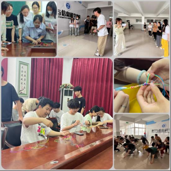 张瑞楠首先介绍了端午节的由来、发展历史及端午节的民间风俗,让学生们感受中华传统节日文化魅力,增强对民俗文化的认同感。主题活动以小组为单位,设置了“划龙舟”、编织五彩绳、套圈趣味问答三个项目。随着裁判员的哨声响起,旱地“划龙舟”全体参赛人员编成5个小组,小组成员热情高涨,分工协作、相互配合,增强了队员间的团队协作能力。在老师的指导下,五彩绳在学生手中造型各异,或剪或编,或打结或整理,“彩线轻缠红玉臂,小符斜挂绿云鬟”,五彩绳寓意着驱邪避灾、祈求平安的美好祝愿。“一掷千金心不悔,圈中宝贝皆套回,满载而归回家去,心中喜悦难以言”,活动在套圈趣味问答的愉快氛围中接近尾声。整个活动现场氛围其乐融融,展现了星空体育官方网站学生青春勃发的精神面貌,提高了同学们的团队精神和协作能力。
