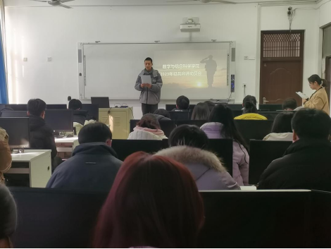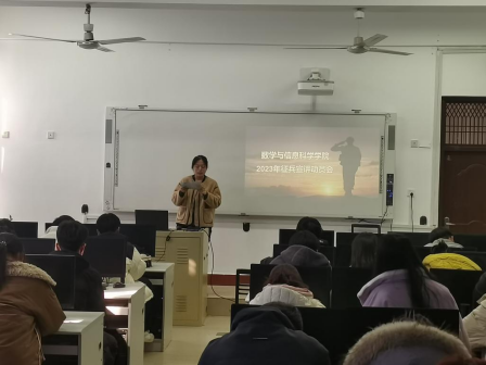 数学类221班王瑞强同学结合个人征兵经历向大家讲述了自己选择应征入伍的心路历程和感受,提到当兵可能后悔两年,但不当兵可能后悔一辈子,并号召大四毕业生与自己一起积极参军,实现理想。