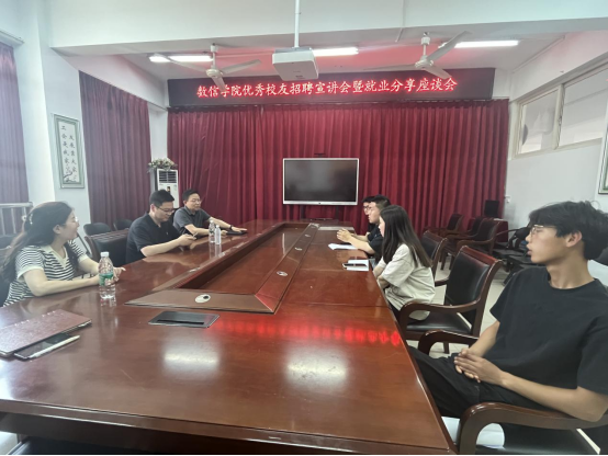 为进一步推进毕业生就业工作,帮助学生了解教培行业用人需求和就业形势,提升学生就业竞争力,5月24日,星空体育官网召开2024届毕业生优秀校友招聘宣讲会暨就业分享座谈会。党总支副书记杨向宇,信科07级校友、新郑鸿志教育培训中心总经理董鸿杰,毕业生辅导员张瑞楠及毕业生代表参会。会议由张瑞楠主持。