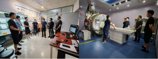 在王凯教授的带领下,宋长明院长一行参观了实验室,并结合实验室设备情况深入探讨了研究生教育创新培养示范基地的建设方案和未来规划,就双方深入合作达成了共识。